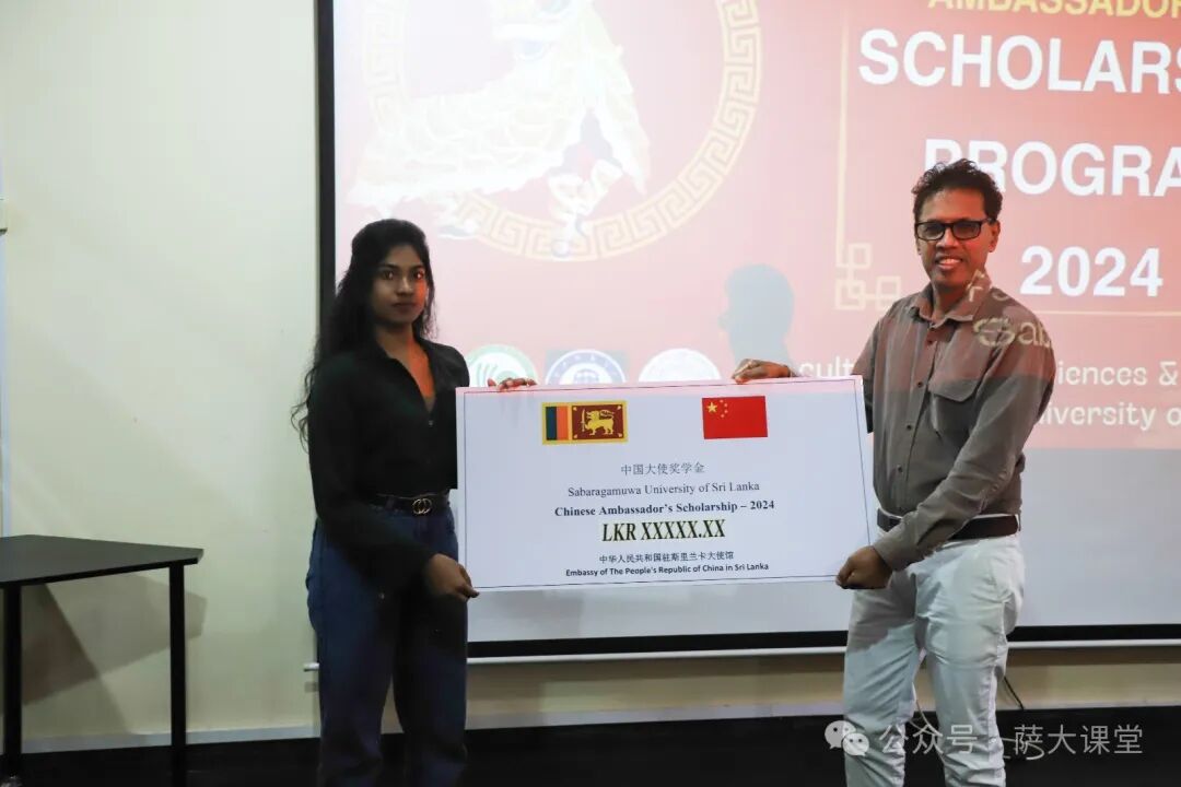 2025年1月28日,农历除夕,萨伯勒格穆沃大学孔子课堂在斯里兰卡萨伯勒格穆沃大学社会与语言学院会议室举行2024年“中国大使奖学金”颁奖典礼。在这象征辞旧迎新、喜庆团圆的日子里,这场充满中斯友谊与文化交流意义的活动为节日增添了别样的喜悦与光彩。孔子课堂中方负责人朱颂副教授、萨大社会科学与语言学院院长兼孔课斯方负责人Rohan Abeywickrama博士、语言系主任Champa De Silva博士、孔课首任斯方院长Manoj Ariyaratna教授以及师生代表等20余人出席仪式。